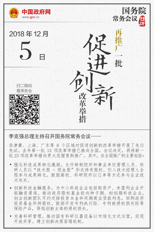 常務(wù)會日歷 | 再推廣一批促進(jìn)創(chuàng)新改革舉措