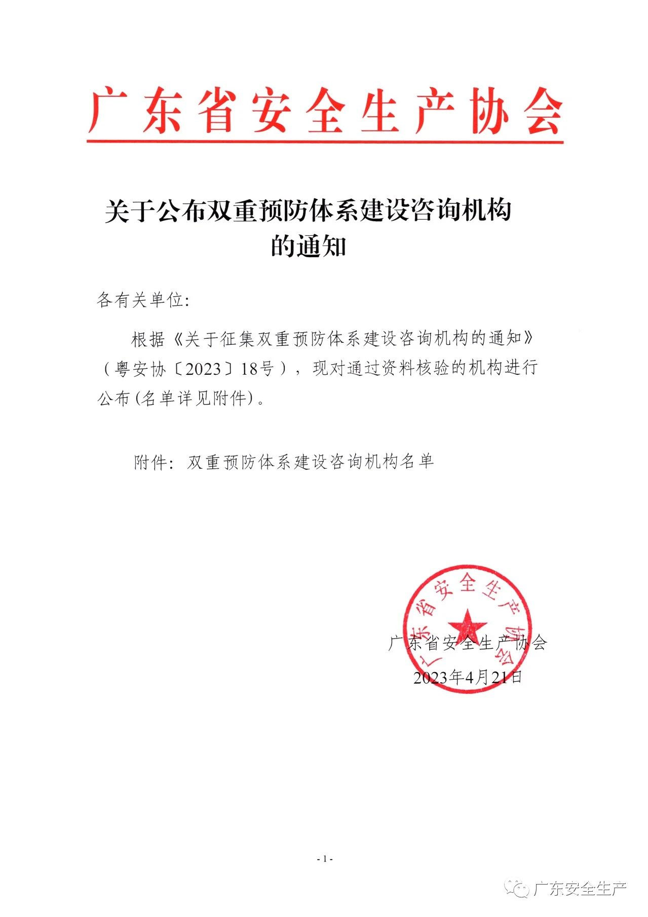 關于公布雙重預防體系建設咨詢機構的通知
