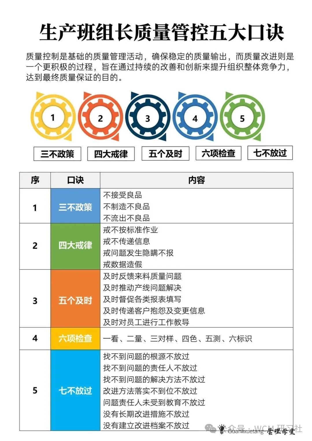 5 、生產(chǎn)班組長質(zhì)量管控五大口訣